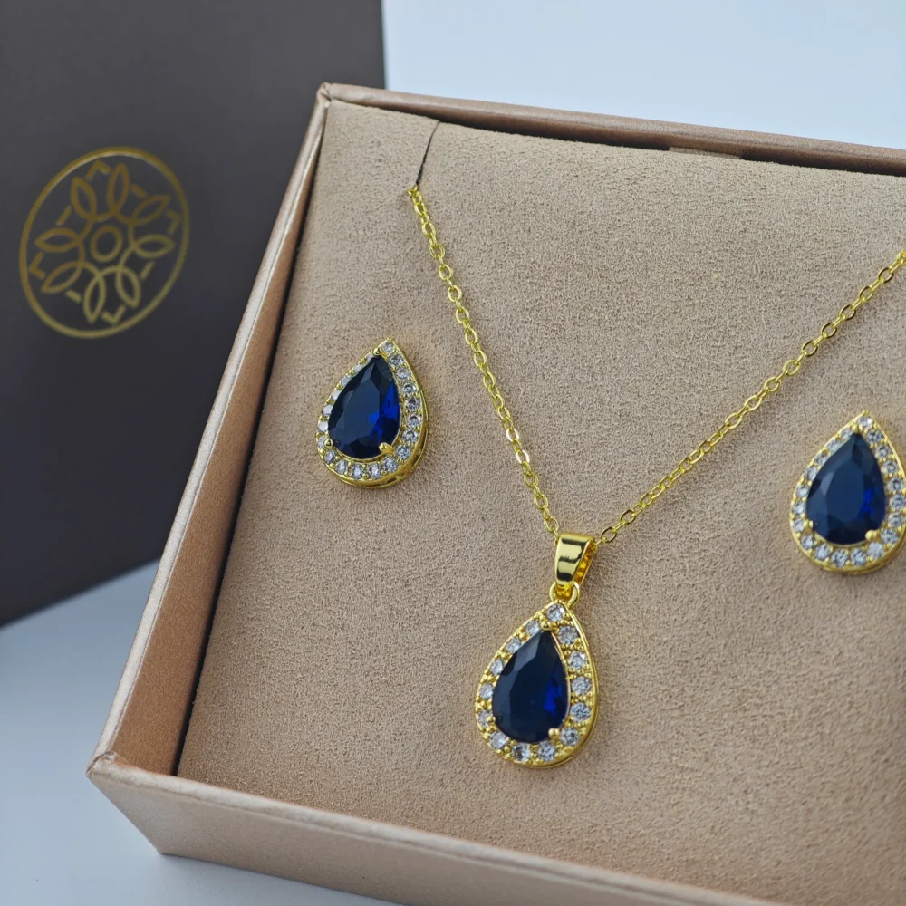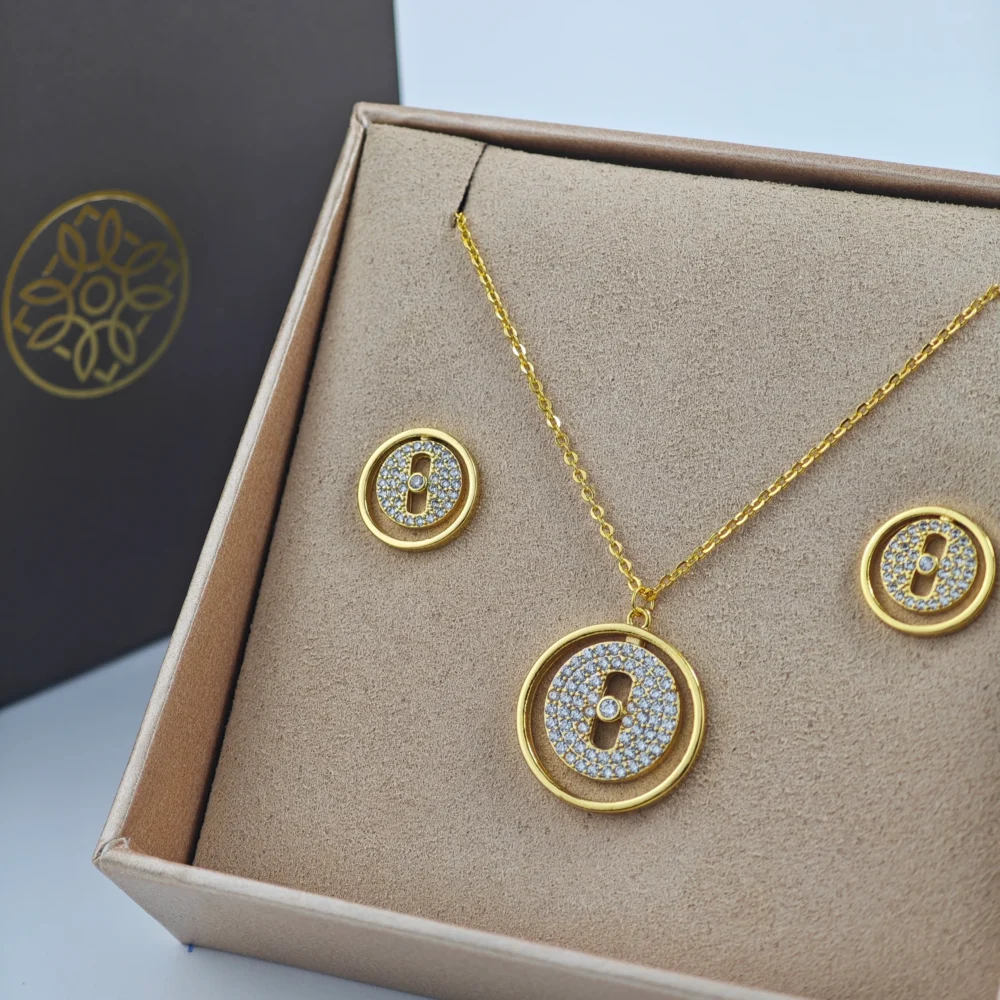 طقم سلسال وحلق نسائي بلون ذهبي | Acc0059