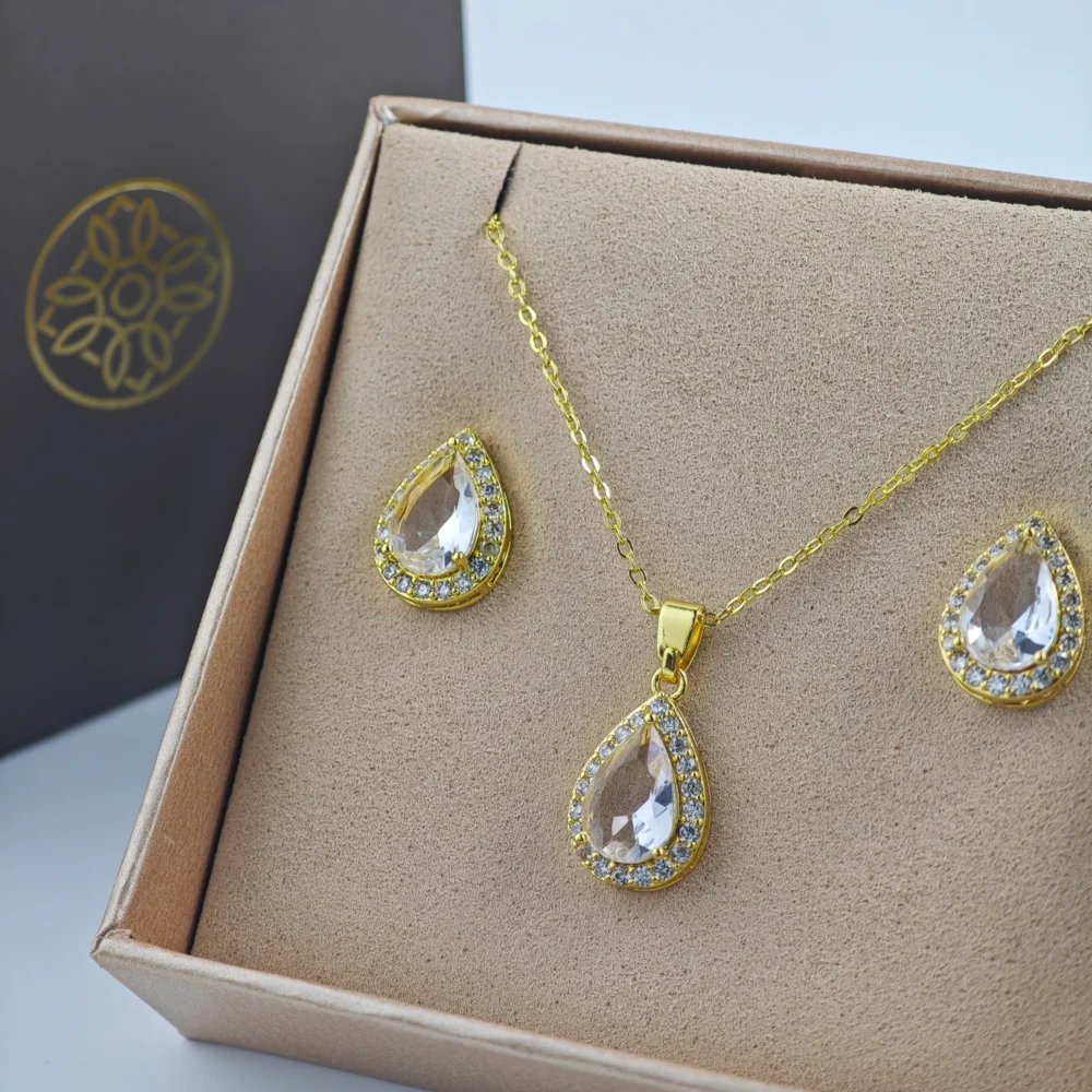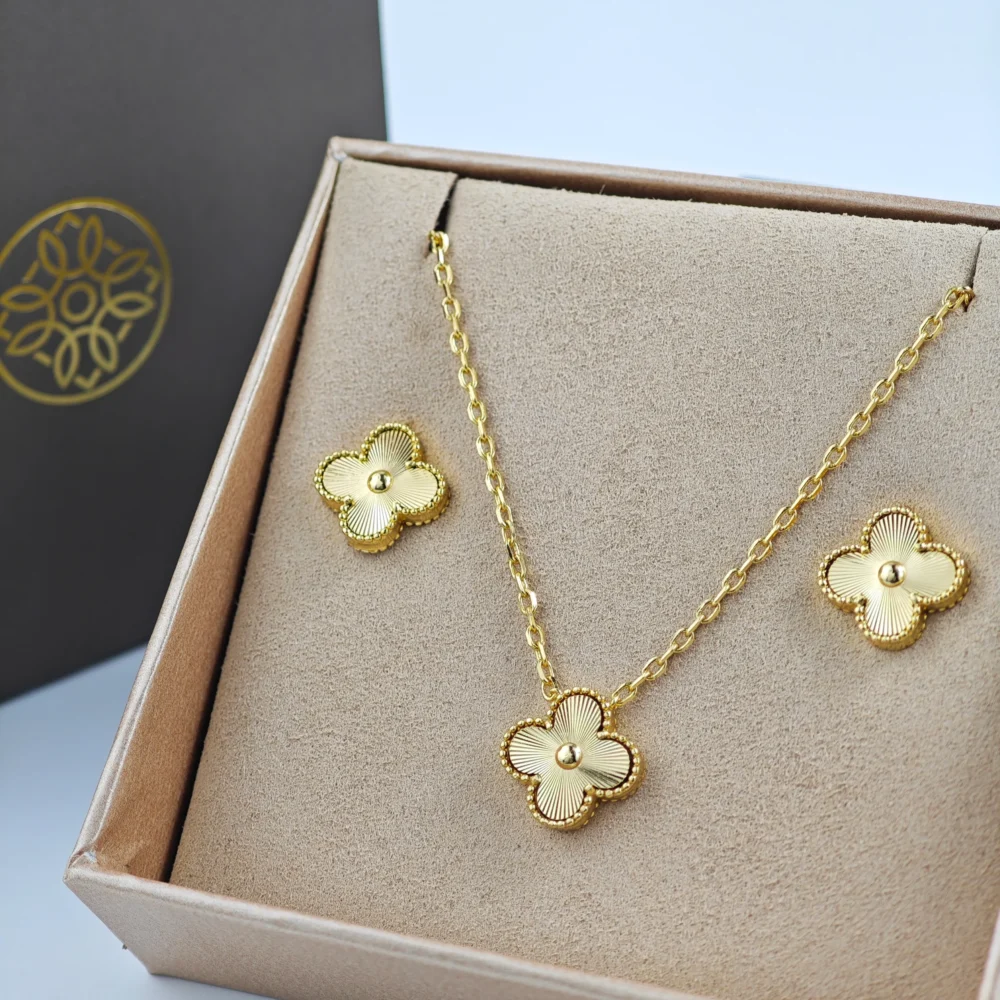 طقم سلسال وحلق نسائي بلون ذهبي | Acc0058