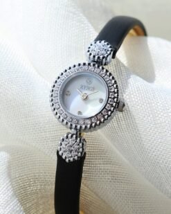 ساعة نسائية من ماركة زايروس بتصميم عصري ، ساعة بسير رفيع من الجلد باللون الأسود ، تتميز الساعة بميناء ملفت بلون أبيض يتزين بإطار عريض مرصع بفصوص الزركون اللامعه ، نسقي الساعة مع إطلالتك المسائية لحضور ملفت .